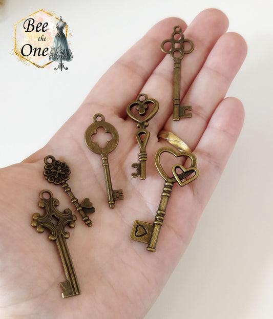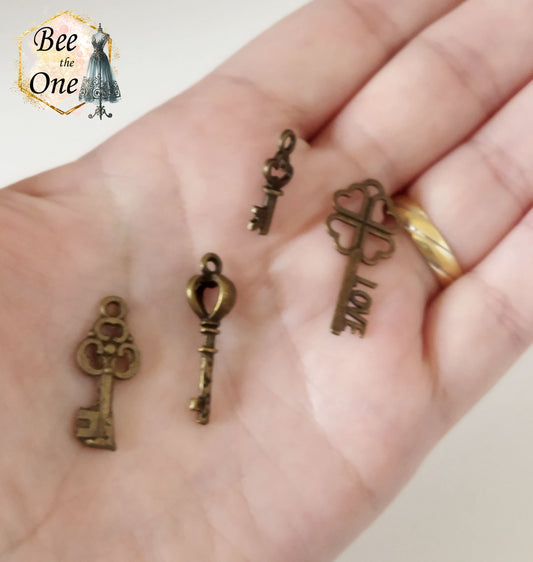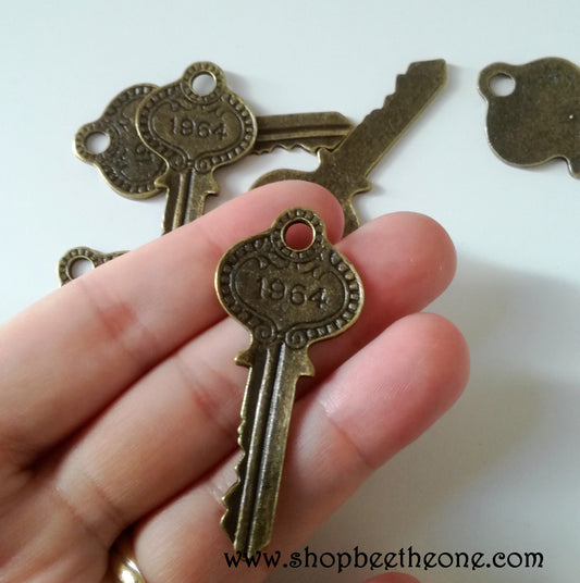 Breloque Grande Clé réaliste "1964" - 52 mm - trou 4 mm - metal couleur bronze