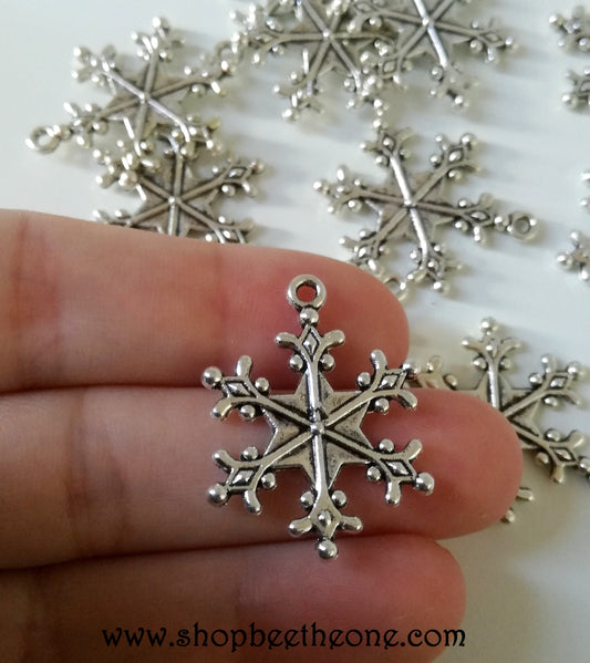 Breloque Flocon de neige argenté - trou 2 mm - environ 22 x 28 mm