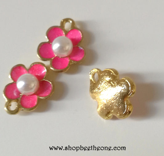 Breloque en émail Petite fleur rose avec perle - 14 mm