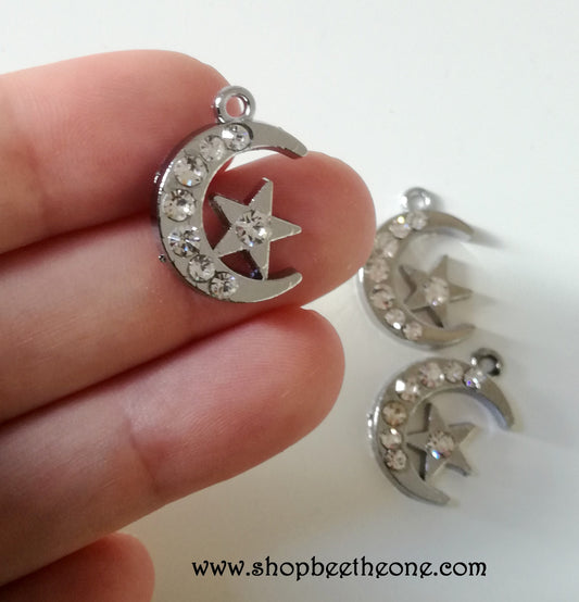 Breloque Croissant de lune et étoile avec strass - 15 mm