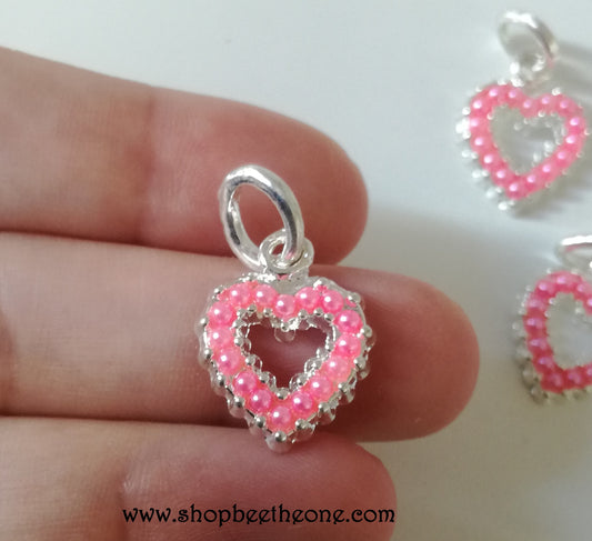 Breloque Petit Coeur avec strass roses et anneau - 15 mm