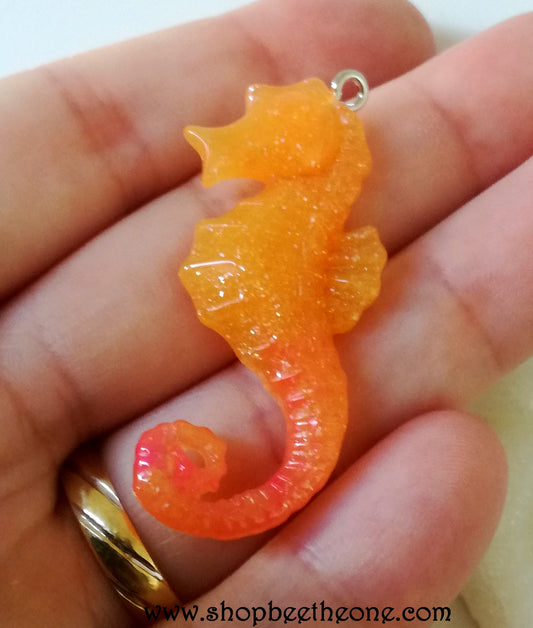 Breloque Hippocampe bicolore en résine pailletée - 42 mm - 8 coloris