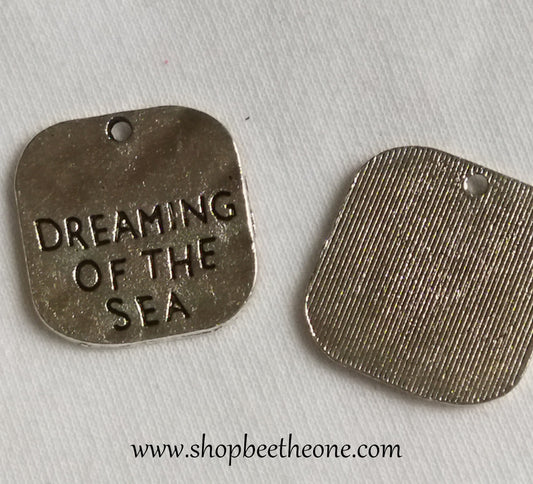 Breloque pièce carrée "Dreaming of the sea" - 18 x 18 mm - argenté
