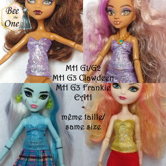 Bustier Sirène imprimé holographique pour poupées Monster High/Ever After High/Winx Club (Mattel) - 3 tailles - 13 coloris - Collection Basics - par Bee the One