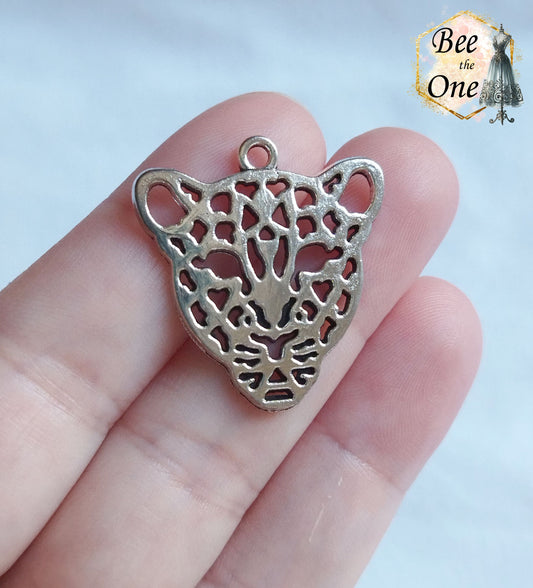 Breloque Tête de léopard ajourée - 28 mm - argenté