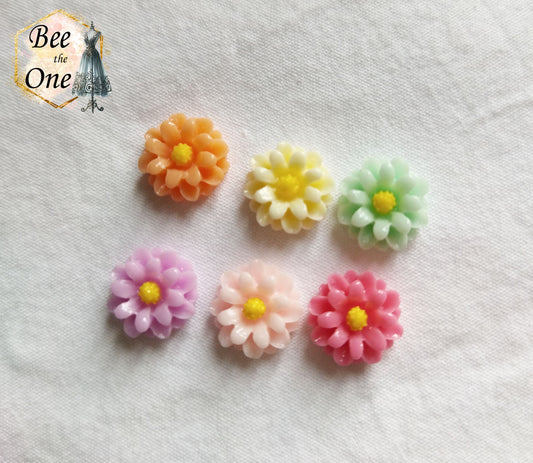 Cabochon plat "Petite Fleur colorée" pour embellissement ou miniature - 12 mm - 6 couleurs
