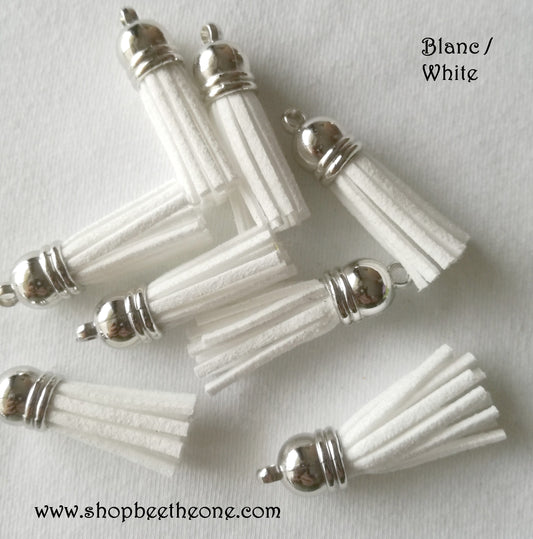 Breloque Pompon en suédine - 38 mm - Calotte argentée - 5 coloris