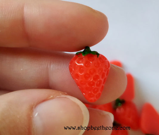 Cabochon plat réaliste "Fraise" pour embellissement ou miniature - 15 mm