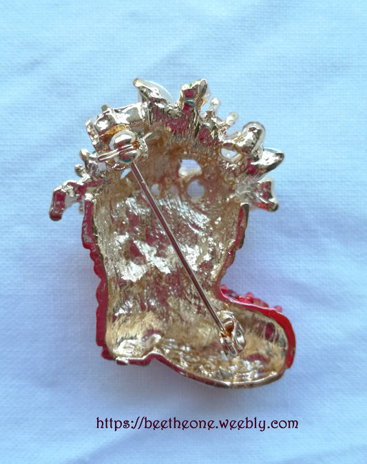 Broche Cabochons et Strass Botte de Noël