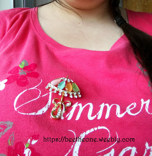 Broche Cabochons et Strass Parapluie fleuri