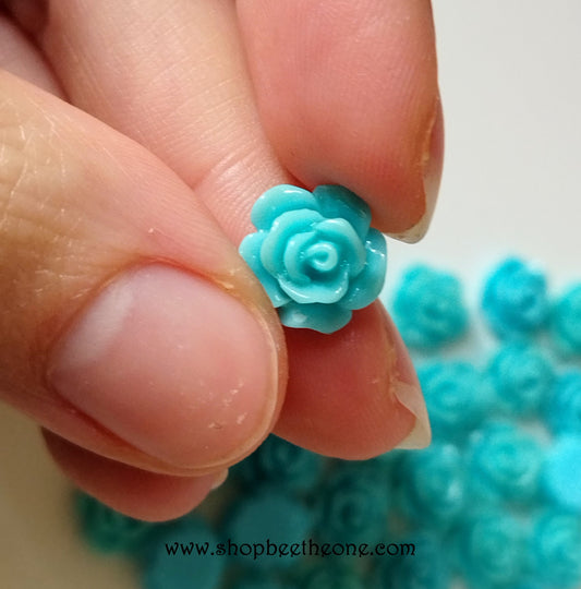 Cabochon plat "Petite Rose" pour embellissement ou miniature - 10 mm - bleu