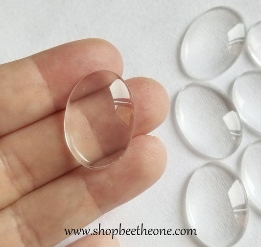 Cabochon ovale en verre loupe - 17 x 25 mm - transparent