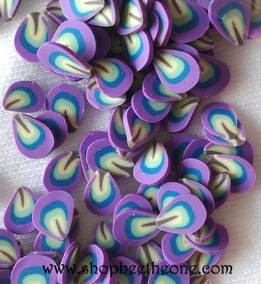 1 g (+/- 70 pièces) de Tranches de Fimo Pâte Polymère - Plume/Feuille arrondie exotique - Vert ou violet