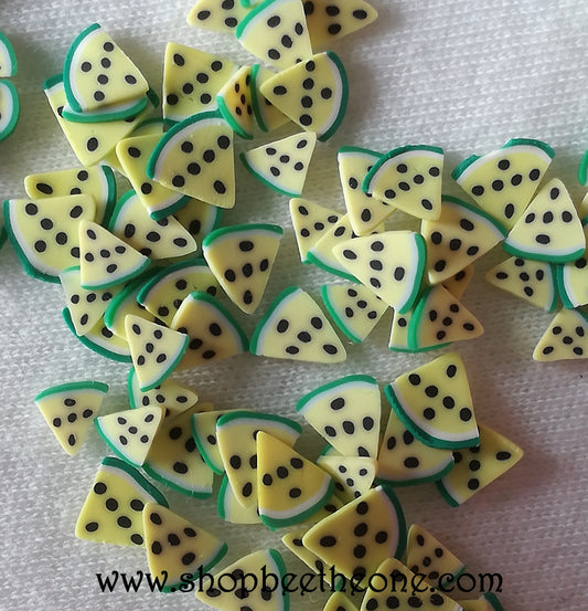 1 g (+/- 80 pièces) de Tranches de Fimo Pâte Polymère - Fruit tropical vert jaune - 2 formes
