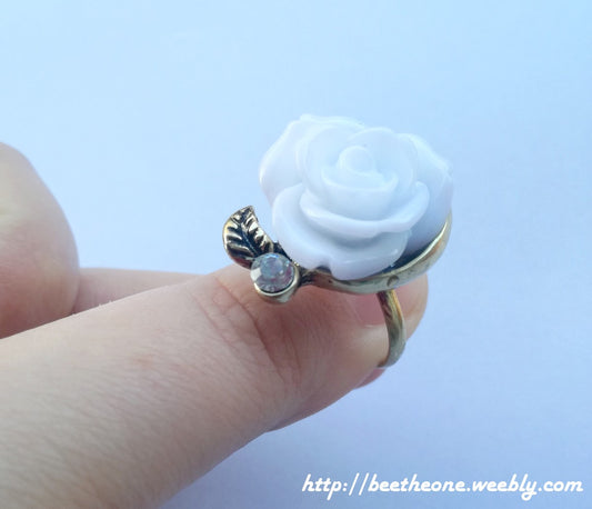 Bague Rose et strass - Inspirée par La Belle et la Bête - Rouge, noire ou blanche