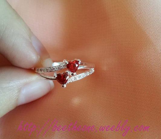 Bague Double Coeur imitation zircon - Coeurs rouges