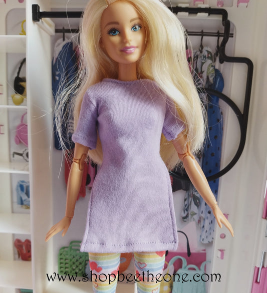 Tunique longue fendue à manches courtes pour poupées Barbie - mauve - 4 tailles - Collection Basics - par Bee the One