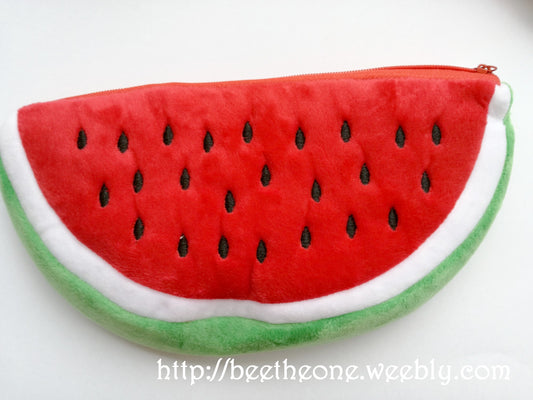 Trousse de rangement plate kawaii Tranche de Pastèque en peluche - rouge ou rose