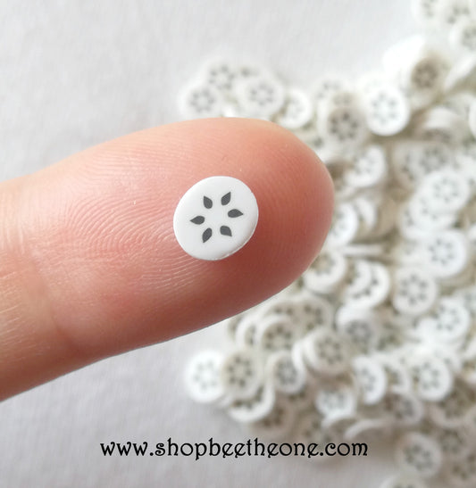 1 g (+/- 50 pièces) de Tranches de Fimo Pâte Polymère - Fruit tropical blanc/noir