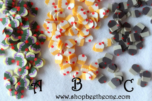 1 g (+/- 45/60/70 pièces) de Tranches de Fimo Pâte Polymère - Gâteau avec cerise - 3 modèles