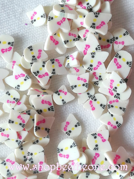 1 g (+/- 50 pièces) de Tranches de Fimo Pâte Polymère Kitty - noeud rose fuchsia ou bleu