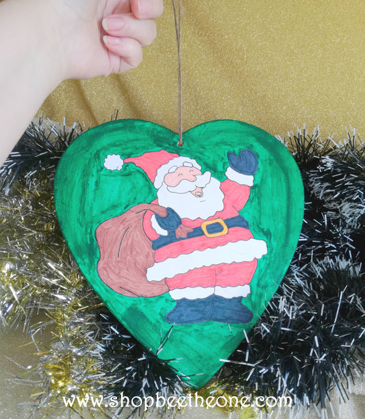 Grand coeur de Noël en bois et peint à la main - Marque Zambara