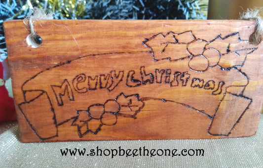 Embellissement de Noël " Merry Christmas" en bois - par Bee the One