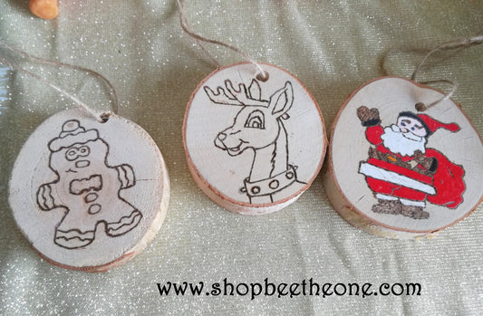 Lot de 3 Décorations de Noël Rondins de bois pyrogravés - Marque Zambara