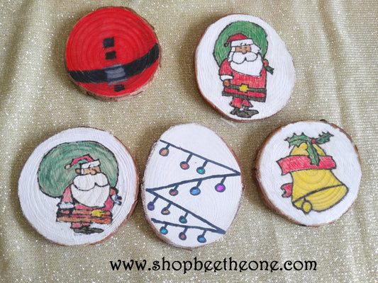 Décorations de Noël - Décors sur rondin de bois sapin ou Père Noël