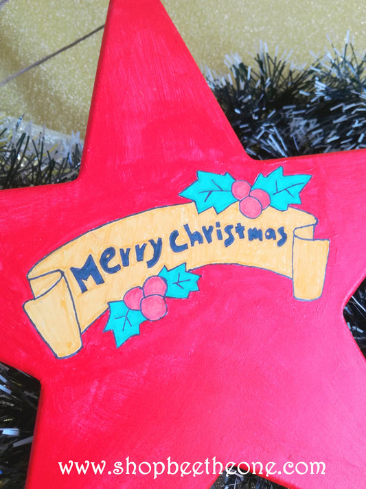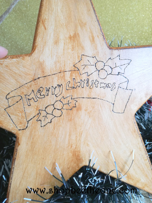 Grande étoile de Noël en bois pyrogravée et peinte à la main - Marque Zambara