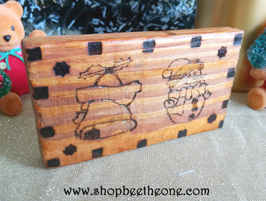 Petit panneau de bois pyrogravé motifs de Noël - Surcyclage/Upcycling - Marque Zambara