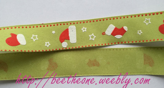 Ruban Gros grain Frise thème Tenue de Père Noël - 25 mm x 1 m - Vert clair ou Gris/beige