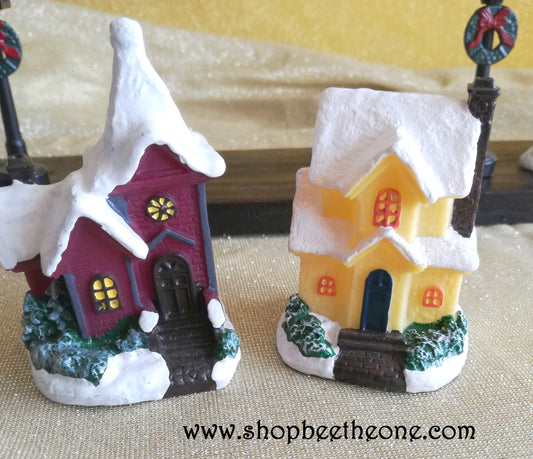 Grand panneau de bois "Village de Noël" avec figurines lumineuses- Surcyclage/Upcycling - Marque Zambara