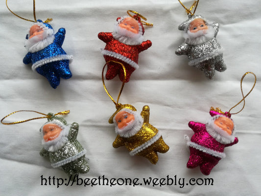 Lot de 6 Décorations Ornements pour Sapin de Noël - Assortiment de 6 Père Noël pailletés