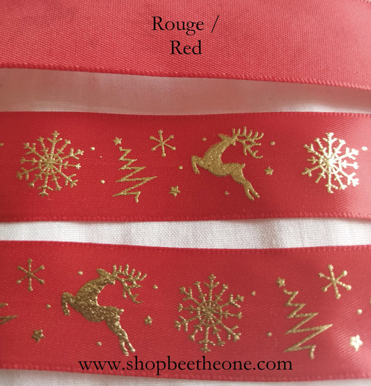 Ruban de satin brillant "Motifs de Noël" - 25 mm x 1 m - Simple face - 2 coloris