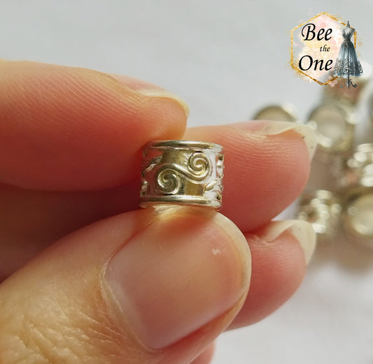 Perle intercalaire tube motif style elfique, viking.. - en métal - 8 mm - trou 6 mm