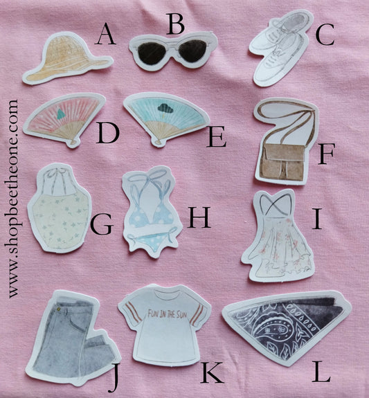 Sticker autocollant "Vêtements d'été" sur papier glacé - 12 modèles