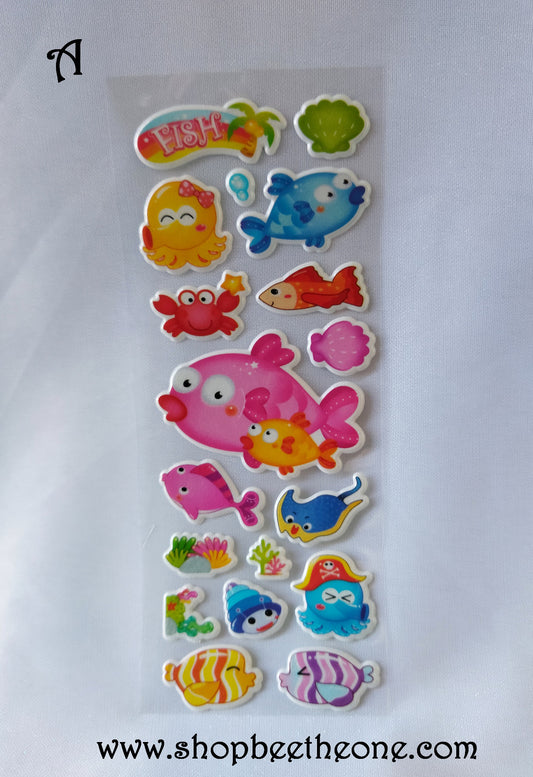 Planche de stickers autocollants en relief "Le Monde des Poissons" - 5 modèles