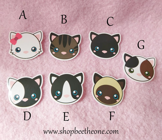 Sticker autocollant "Tête de Chat kawaii" sur papier glacé - 7 modèles