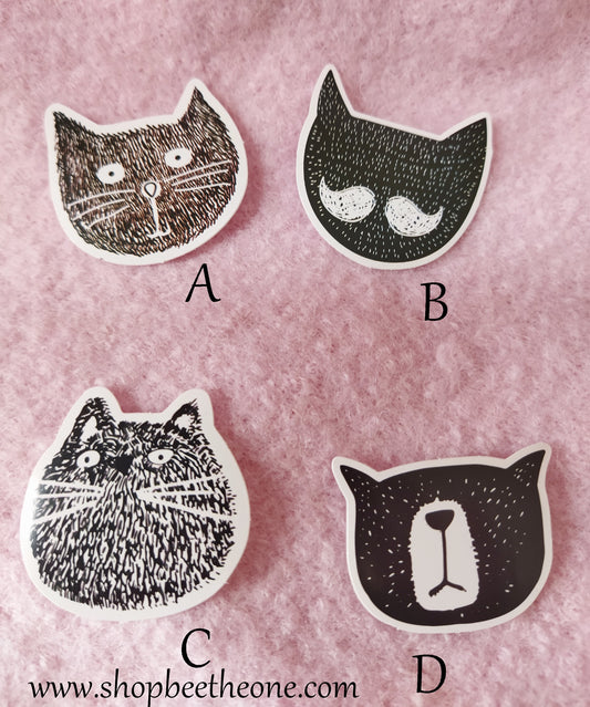 Sticker autocollant "Tête de Monsieur Chat" sur papier glacé - 14 modèles