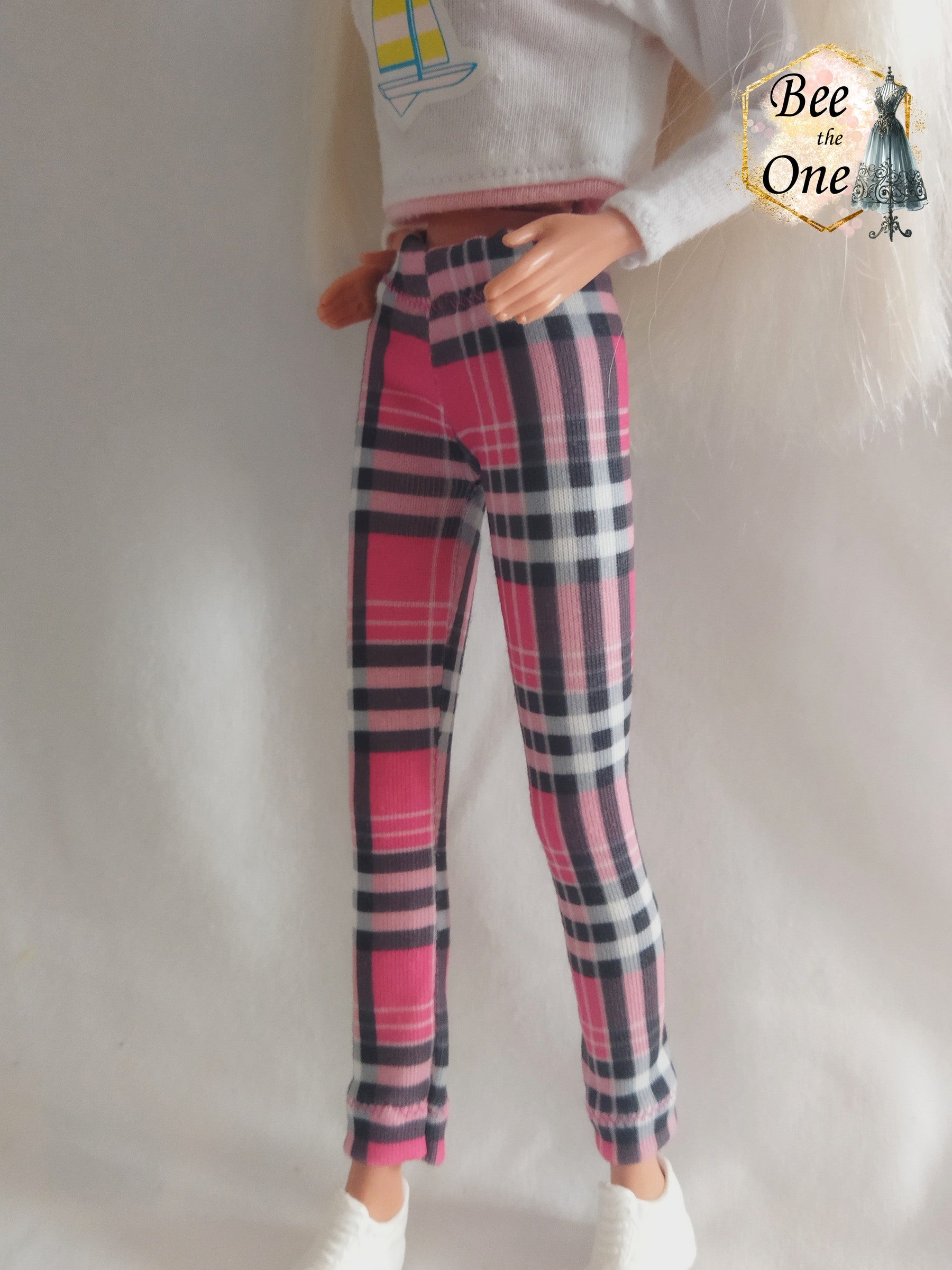 Pantalon collant leggings long motif tartan pour poupées Barbie - 3 tailles - Collection Basics - par Bee the One